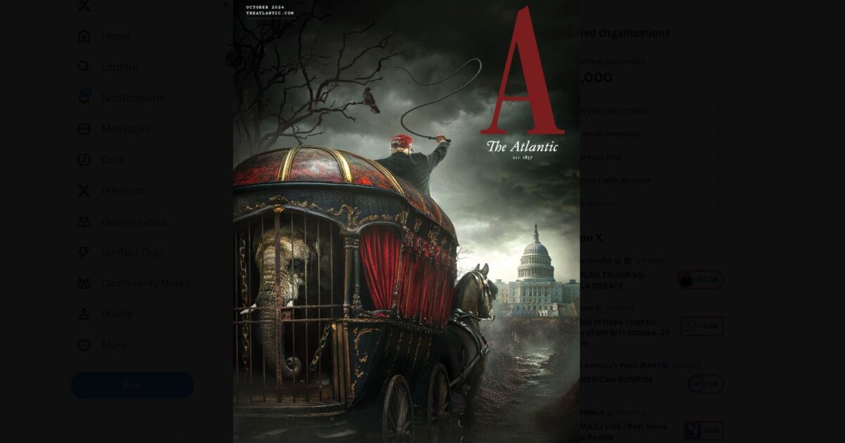 “The Atlantic accidentally argues Kamala Harris and permanent DC have created a hellscape and that Donald Trump is riding to America’s rescue under great difficulty. Powerful visual!” she posted on X.