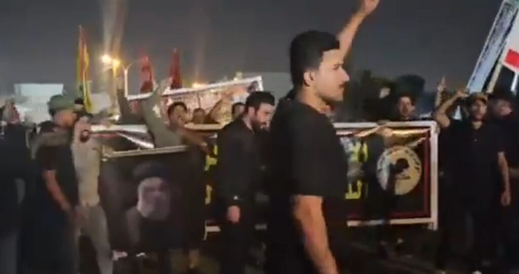 She stated, “Videos show protesters clashing with security forces in riot gear can be seen among the large crowd, along with flags of Iran-backed militias in Iraq known as the Popular Mobilization Force.”